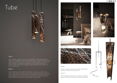 Tube silindirlerin hayatımızda ki yerini temsil etmektedir. Etrafımızda gördüğümüz çoğu nesne silindirlerden meydana gelmektedir. Hele ki yüzyıllardır ulaşımımızı silindir yapılara dayandırdık. Bu bakış açısından yola çıkılarak tasarlanan Tube modern yaşam alanlarının vazgeçilmez bir aydınlatma ürünü olacaktır. Doğal taş ile birleşimi silindirin hayatımızda ki doğal ve temel yapılardan birinin olduğunu ön plana çıkarmaktadır.